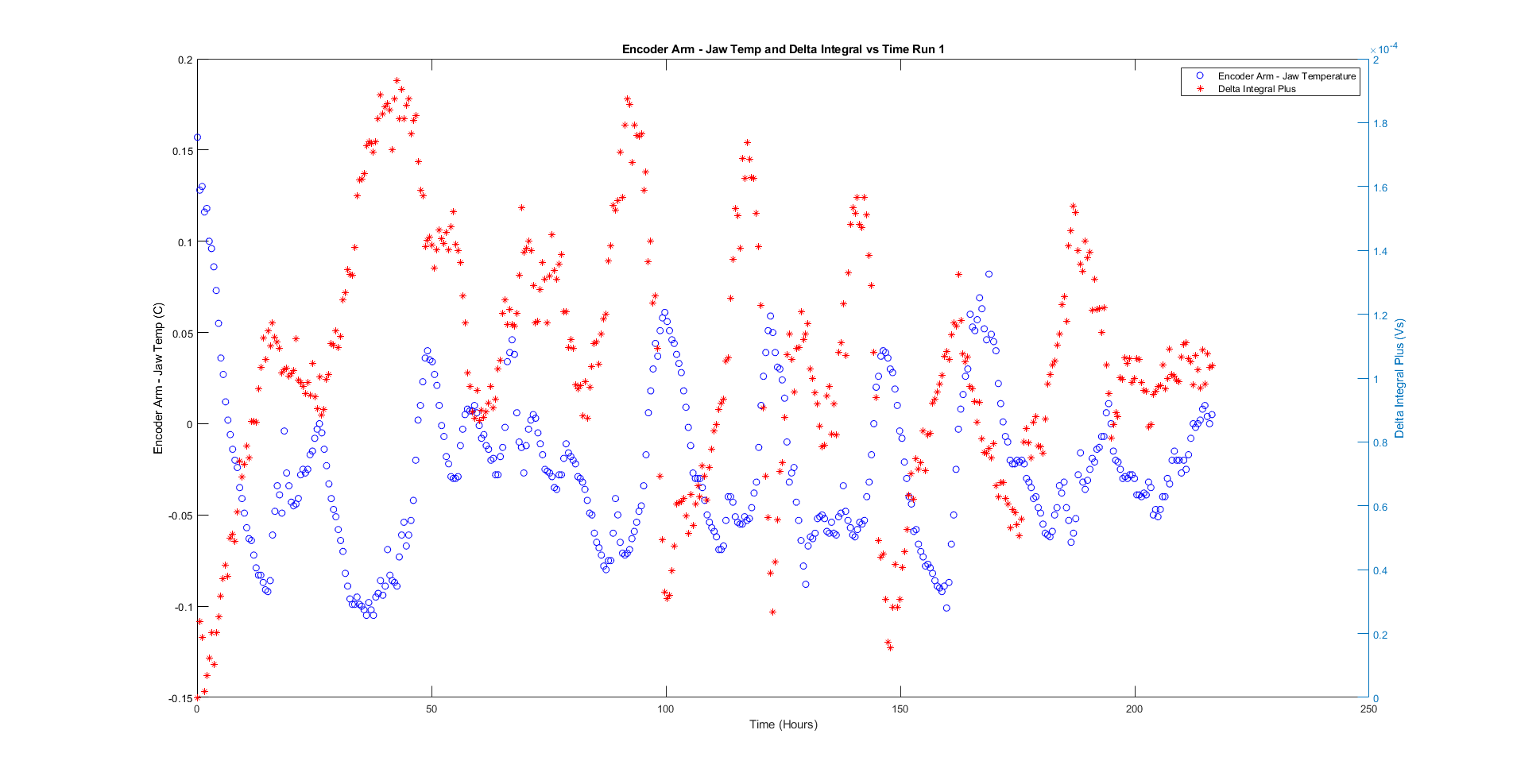 Friday, September 6, 2019 11:30 AM 95222 Encoder Arm - Jaw Temp and Delta Integral vs Time Run1.png
