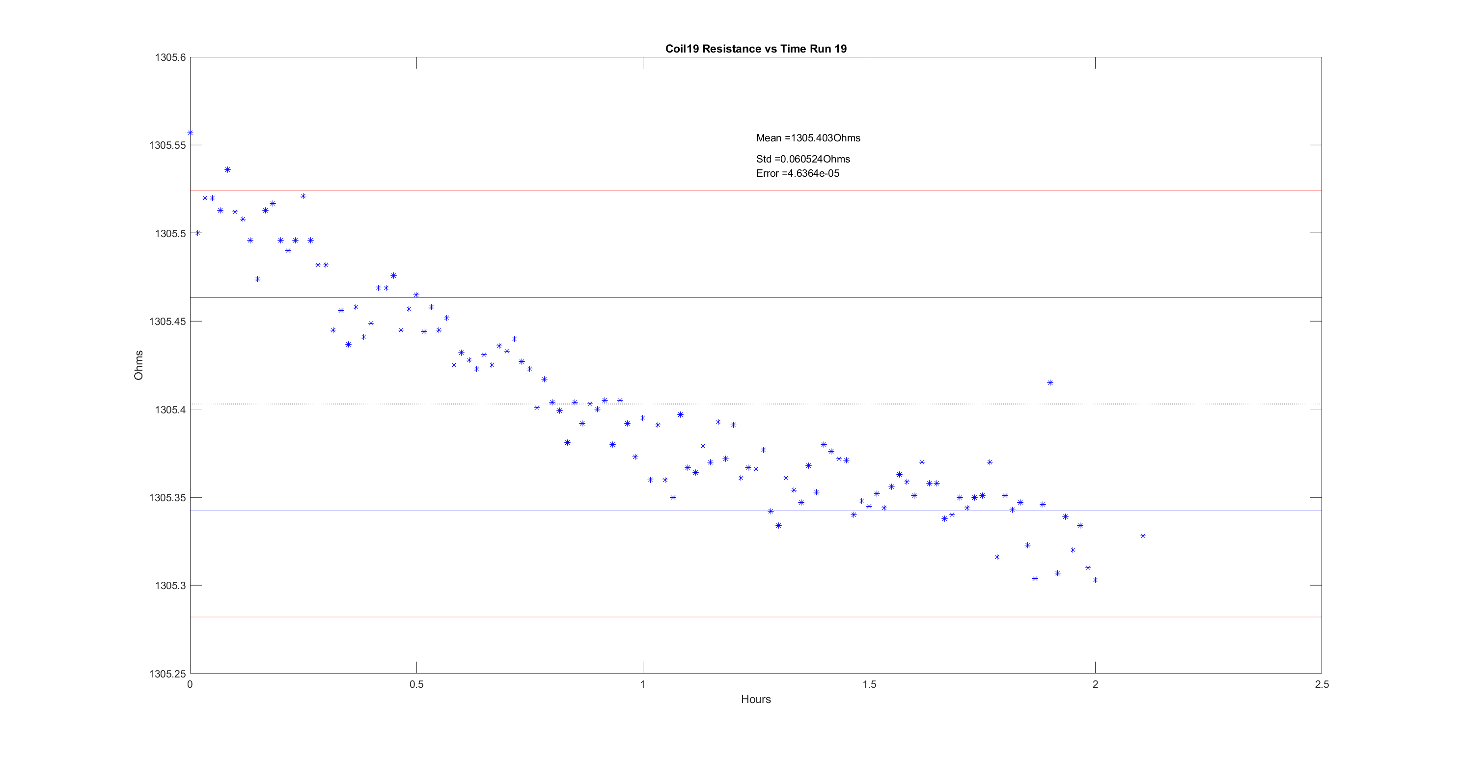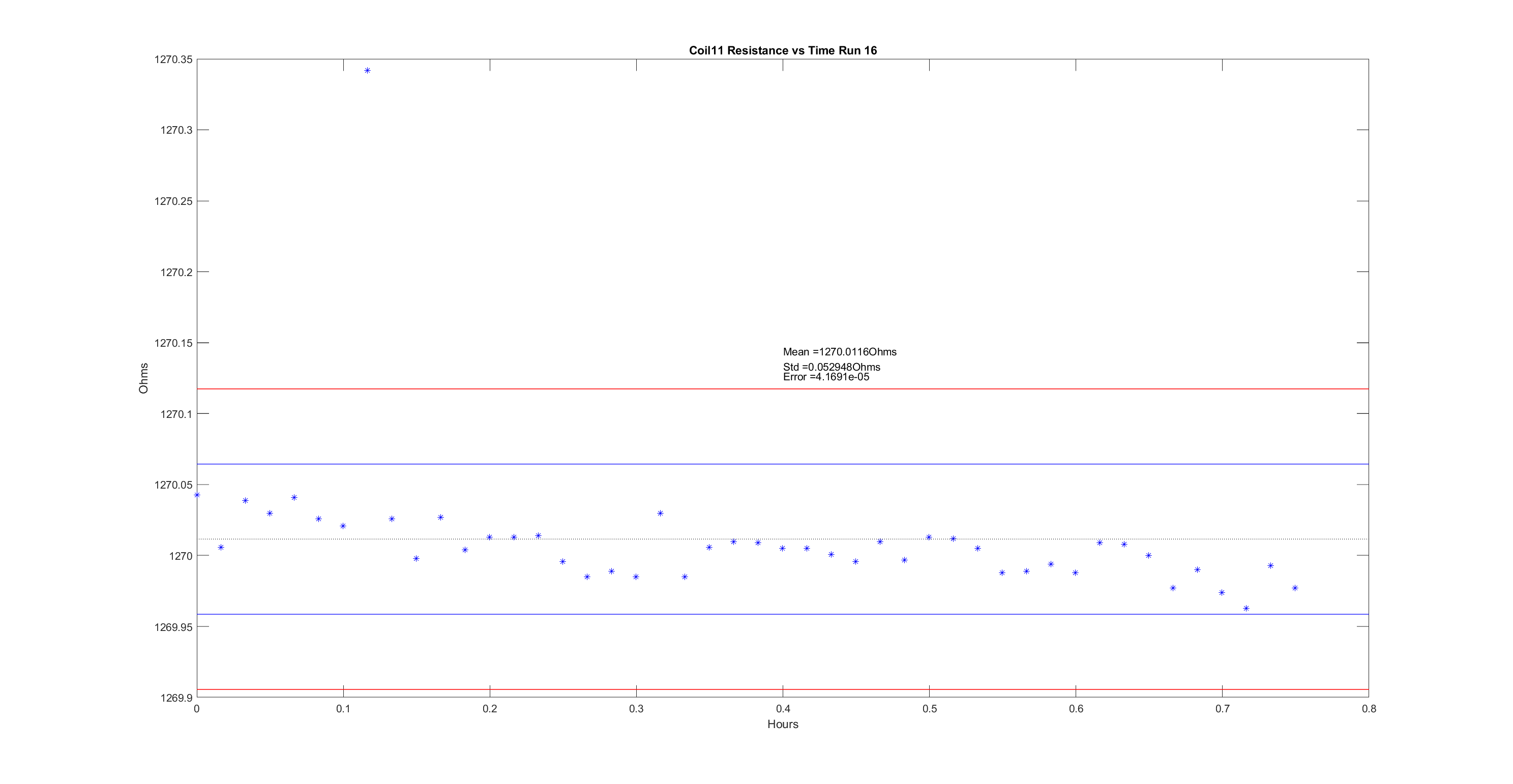 Tuesday, December 10, 2019 3:59 PM 96109 Coil14 Resistance after Temp Correction vs Time Run 1.png