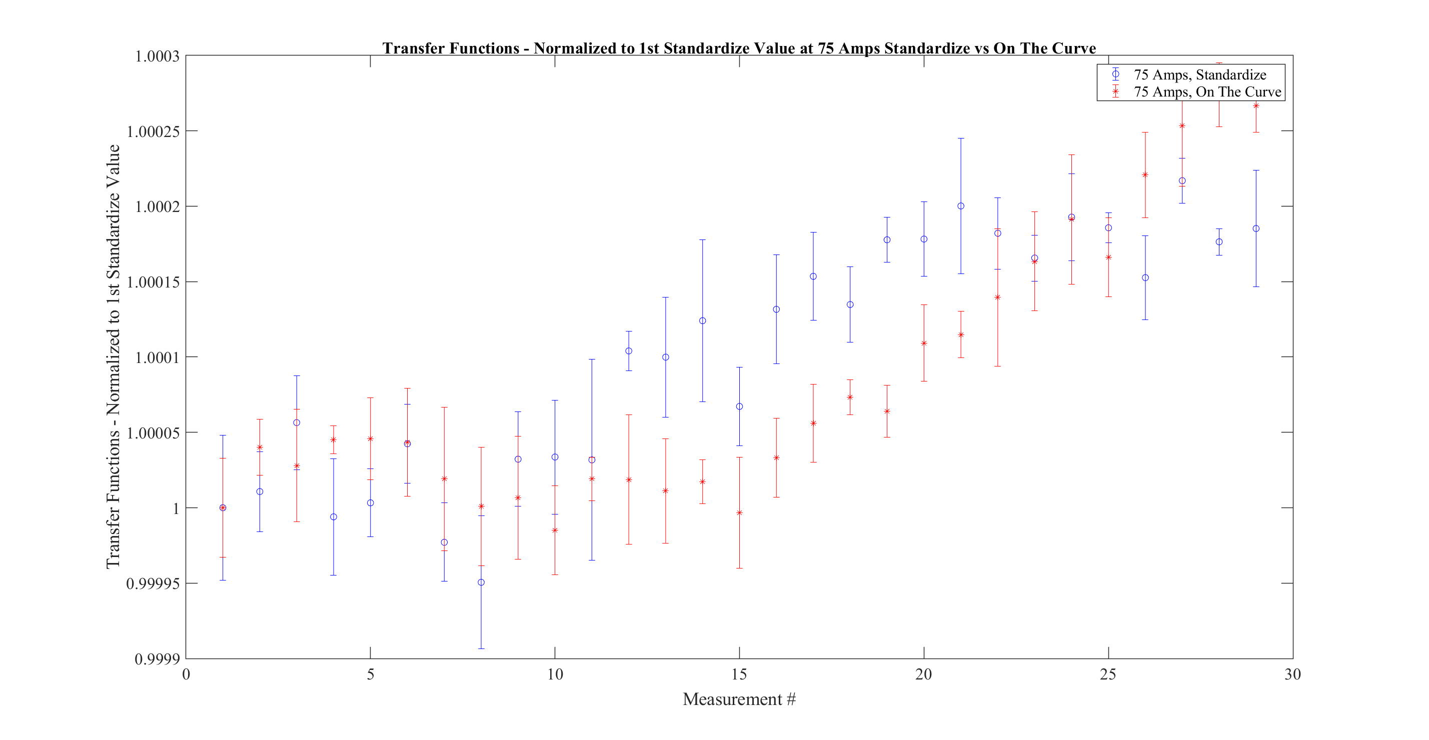 Wednesday, October 8, 2025 10:33 AM 100023 Transfer Functions at 75 Amps Standardize vs On The Curve, 29 Measurements.png
