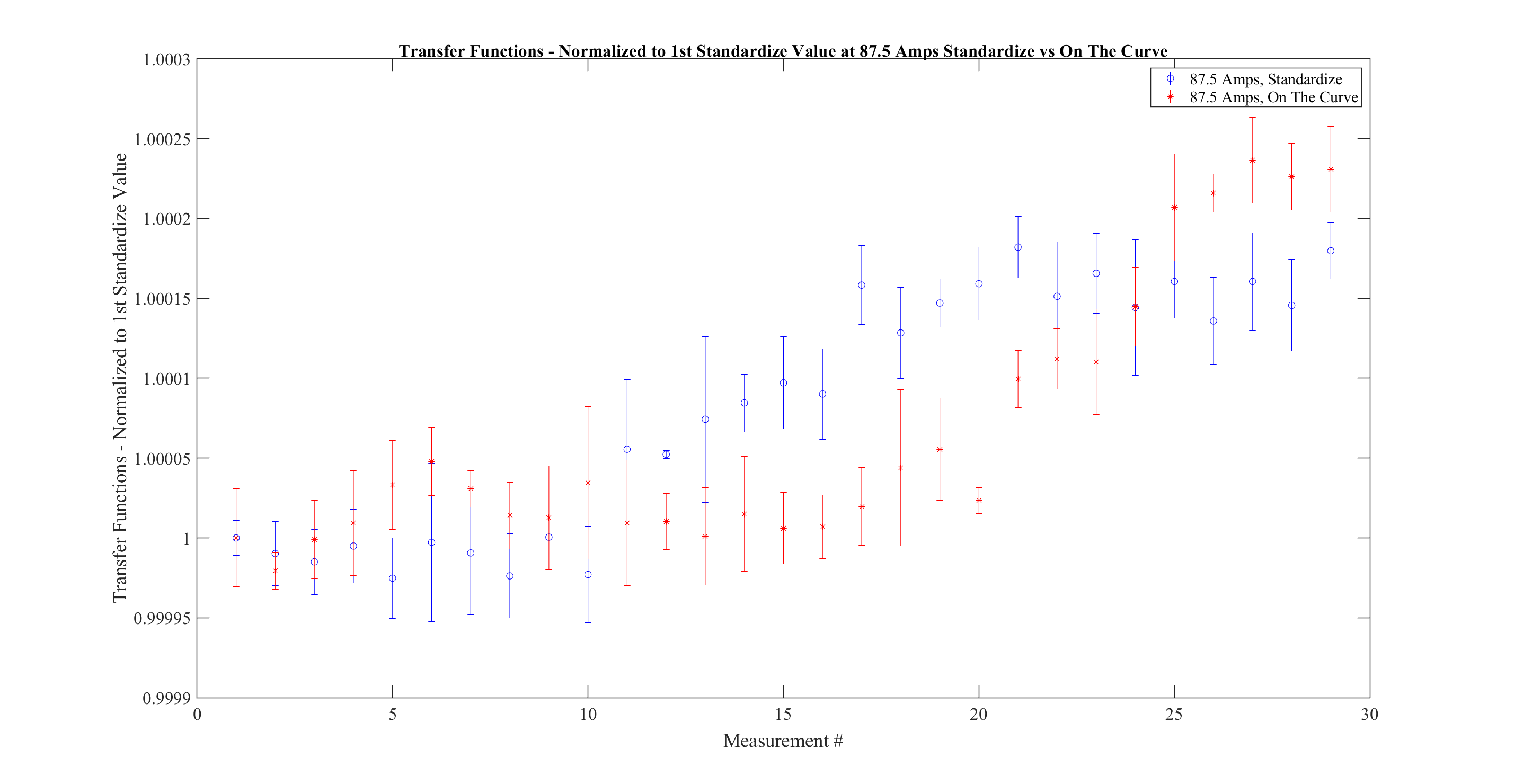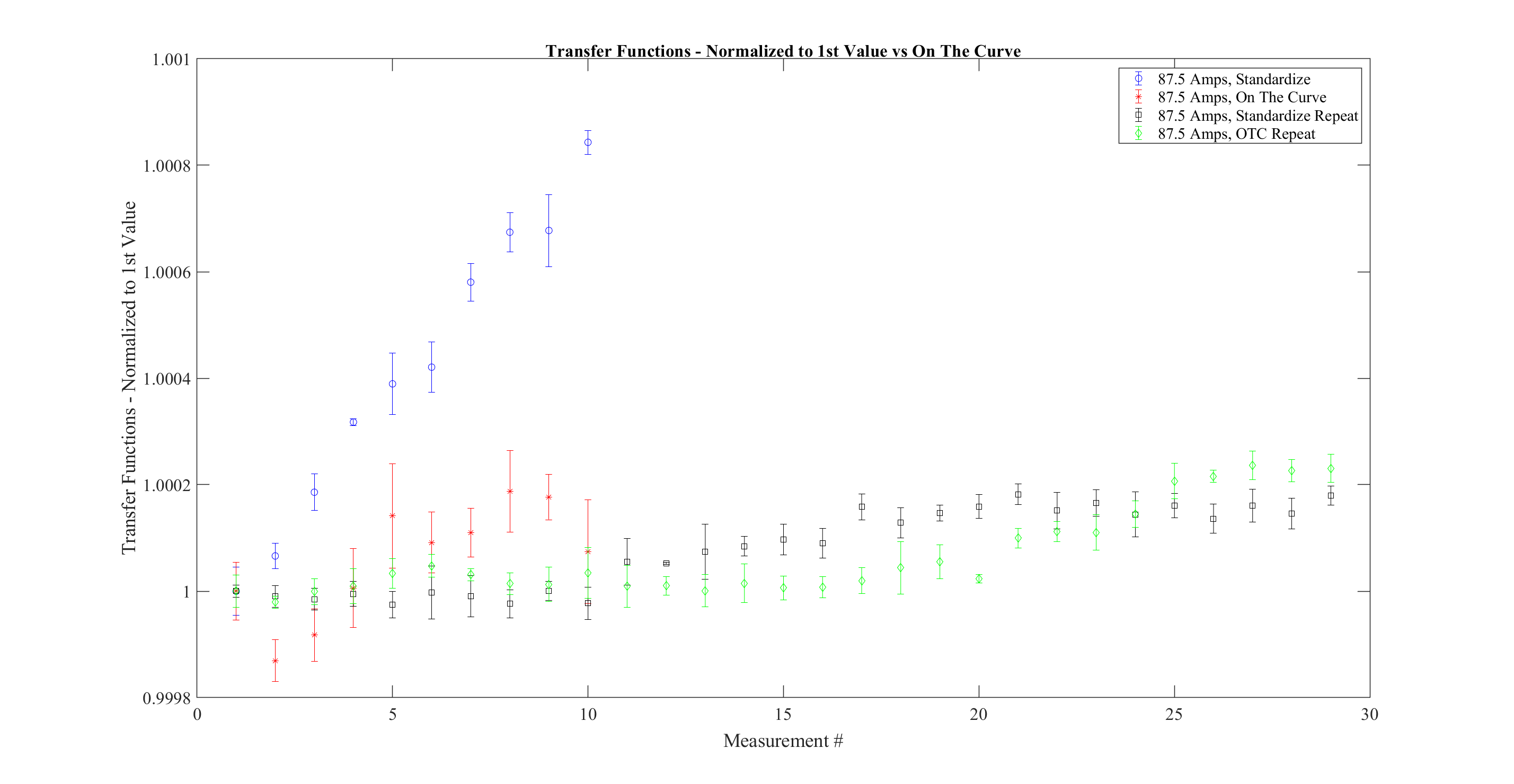 Wednesday, October 8, 2025 10:33 AM 101576 Transfer Functions at 87.5 Amps Standardize vs On The Curve, 29 Measurements.png