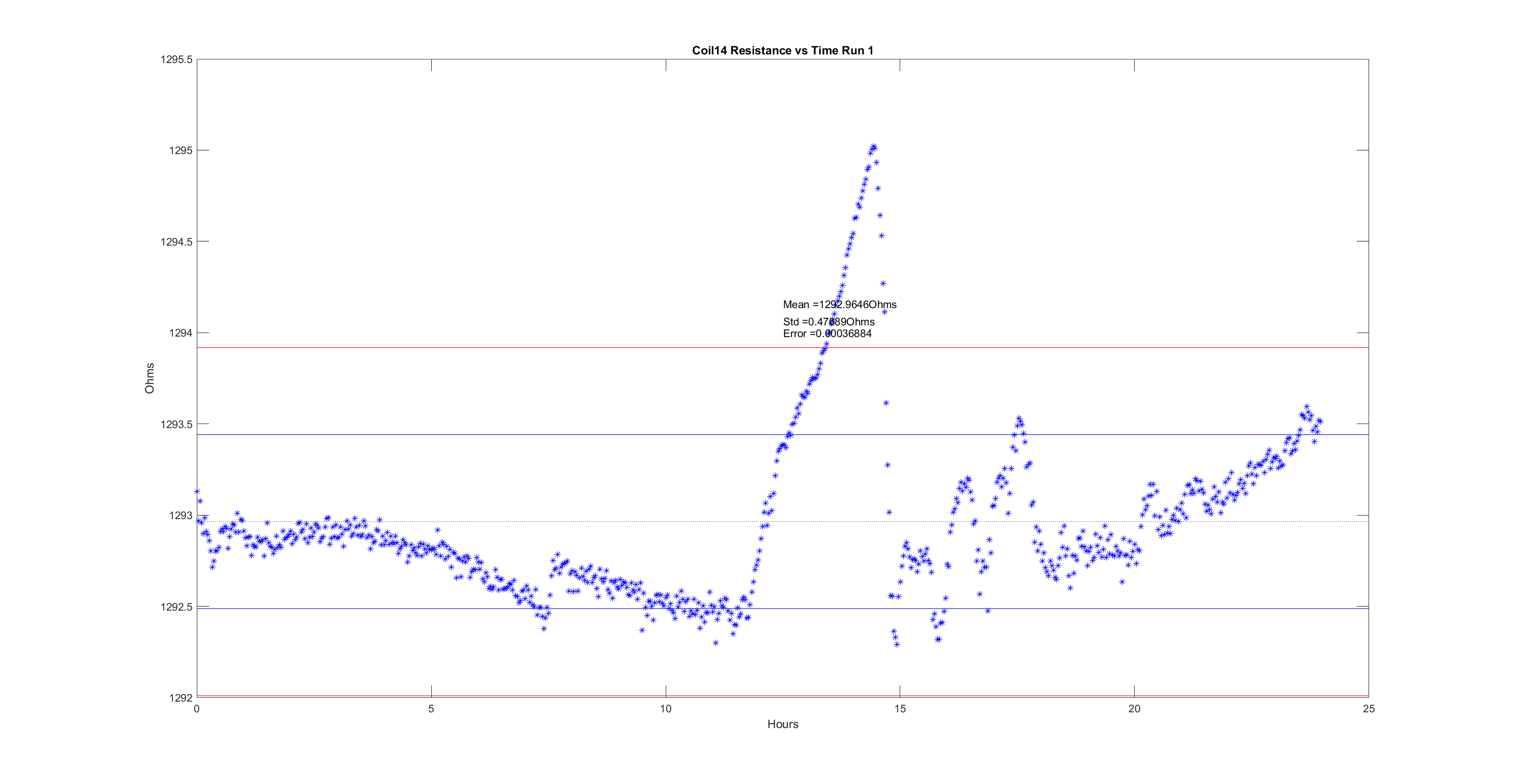 Tuesday, December 10, 2019 3:59 PM 96109 Coil14 Resistance after Temp Correction vs Time Run 1.png